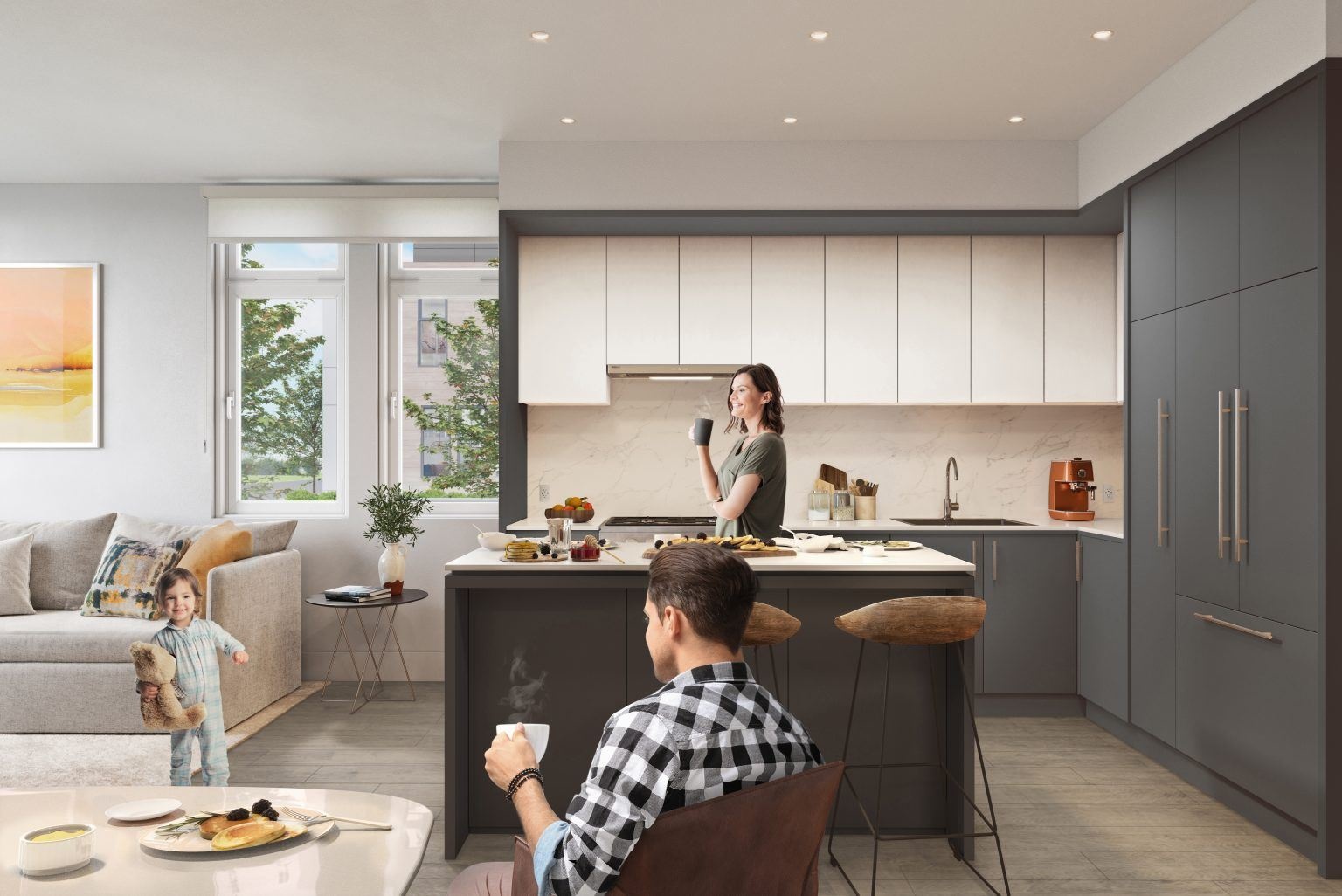High ceilings and natural light create an airy atmosphere, while plenty of storage options keep everything organized. Well-planned spaces allow your family to comfortably appreciate time together, or to step away to recharge on their own. At Kin Collection, home is just right.