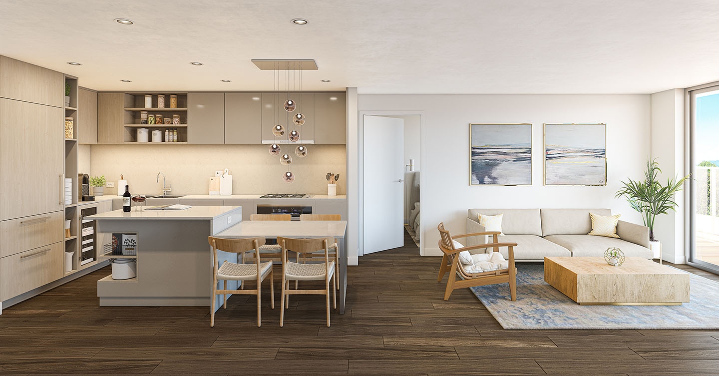 Designed by supreme MCMP Architects, the sleek modern architecture was inspired by the boutique hotels of Malibu and Santa Monica. Expansive windows, spacious sundecks, and extensive rooftop patios accentuate the spectacular beach and sunset view. Serving with exceptional electrical appliances, bathroom amenities as well as integrated dining areas and moveable walls, Kitsilano is designed with quality and flexibility, which makes a new definition of elegant living.